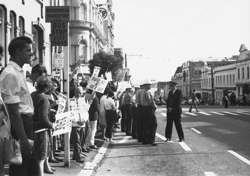 Miller writes, ‘Considering the various manifestations of civilian dissent in regard to particular government policies (whether New Zealand, South African or American) that I have photographed, I seem to have been performing the role of a sympathetic observer, insofar as I tend to support the causes that motivate such protests, rallies or meetings’.
